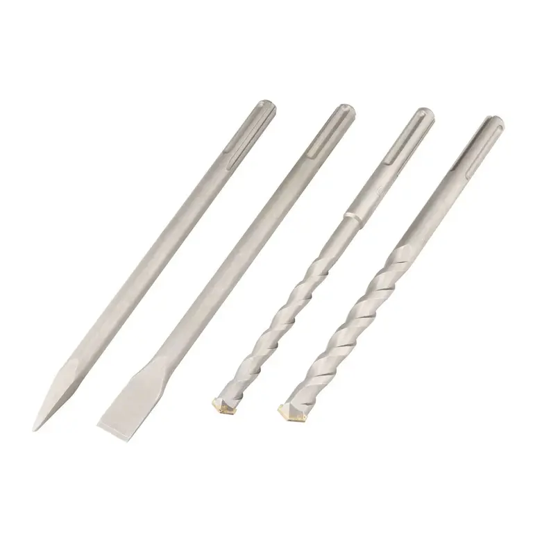 کیف ابزار همرا ه با 5 مته یک مته 16×320 میلی متر، یک مته 18×320 میلی متر، یک مته 22×320 میلی متر، یک عدد قلم نوک تیز 25×350 میلی متر، یک عدد قلم سر تخت 25×350 میلی متر، محافظ لاستیکی ضدغبار ، عمق سنج ، ظرف گریس، دسته جانبی |